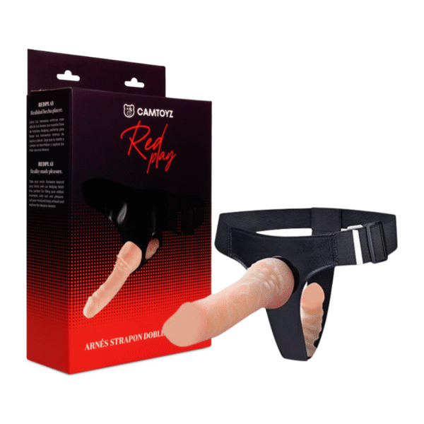 Arnés de doble penetración con 2 dildos adaptables, uno pequeño y uno grande, donde puedes elegir entre penetrar, ser penetrado o ambos al mismo tiempo. Es usado tanto por parejas heterosexuales como homosexuales.